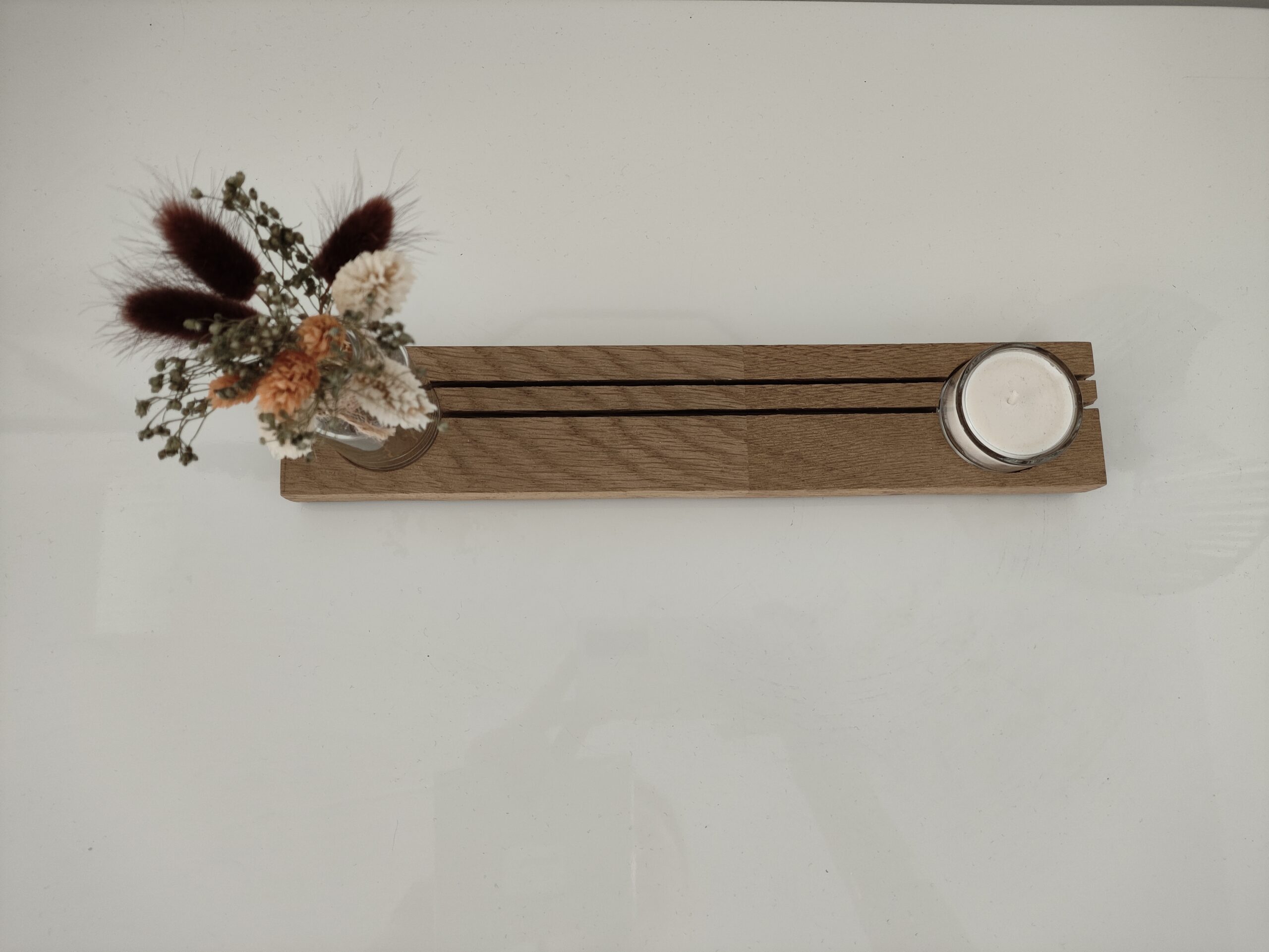 Fabriqué à partir d’une chute de plan de travail en chêne recyclée, ce support unique est un parfait exemple de l’upcycling : donner une nouvelle vie à des matériaux destinés à être jetés, pour créer des objets utiles et esthétiques.